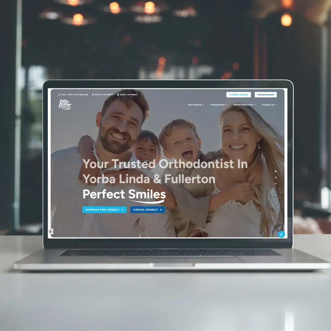 In addition to marketing strategy, we provided Potter Orthodontics with a website designed to fuel patient engagement and streamline new starts. The site reflects the practice’s personality while supporting conversions through free consult scheduling, clear financing offers, and family-focused messaging.